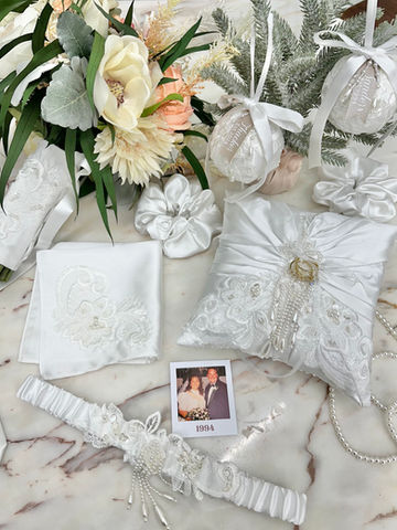 Ready to make something beautiful? Schedule a complimentary consult (virtual or in person) where we'll talk about what is doable with your gown or alterations scraps, your bouquet size, vision, and any personal touches you'd like to include.