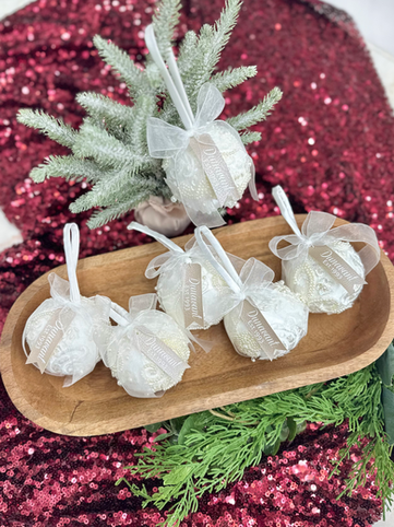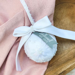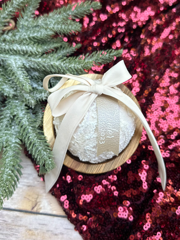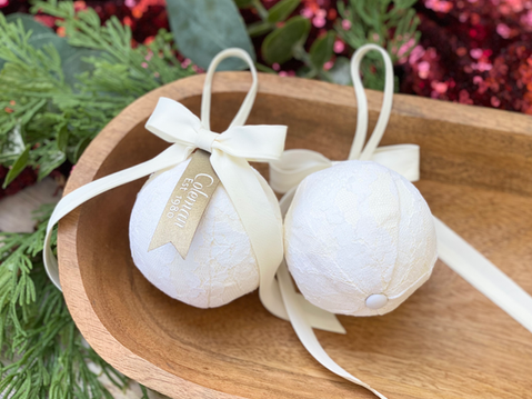 Each ornament is handcrafted entirely from your wedding dress — whether it's your own, your mother's, or from alteration scraps. At 3 inches in diameter with a 4-inch hanging loop, it’s the perfect size for any tree, mantle, or keepsake display.